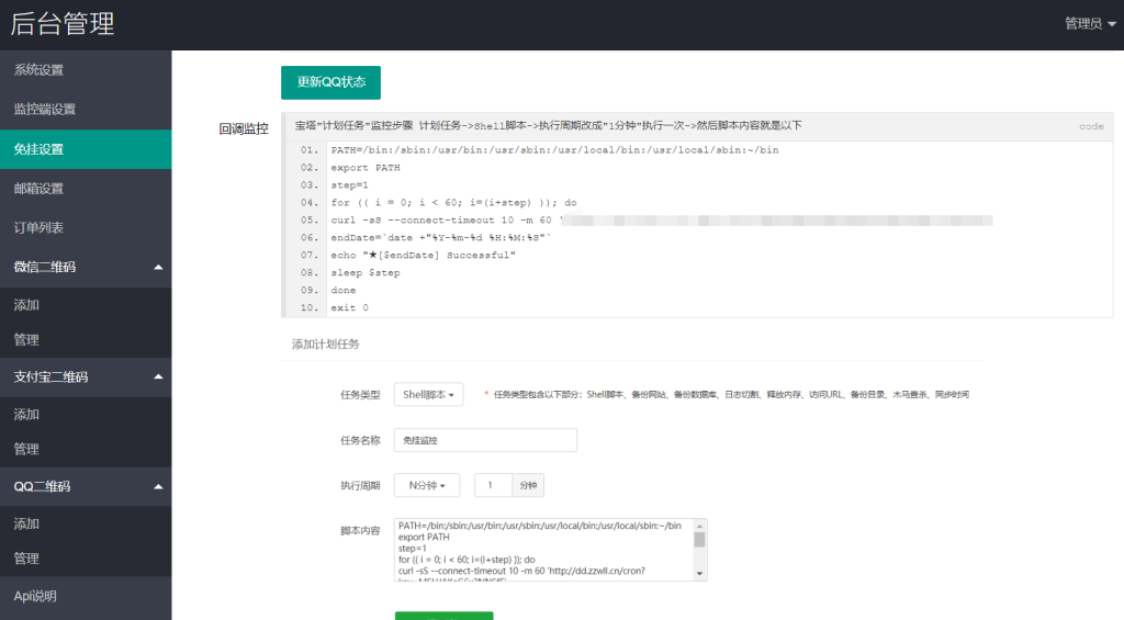 9、使用免挂或者软件监控,使用免挂需要配置回调监控